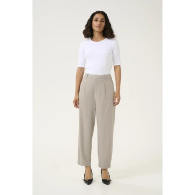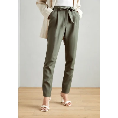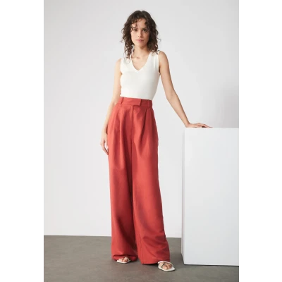 SMART WIDE-LEG WITH BUCKLE DETAIL - Trousers - mottled light brown